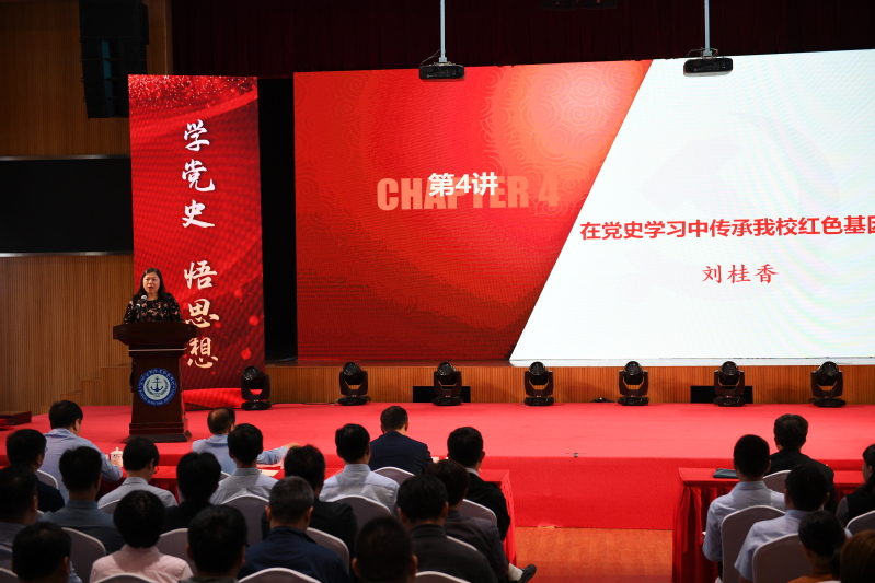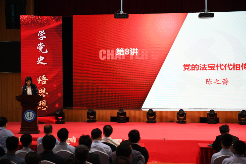 党委宣传部部长刘桂香讲授《在党史学习中传承我校红色基因》,结合校史讲党史,强调了坚守党领导下的新中国海事职业教育初心使命,赓续红色血脉,矢志海运报国。从建校红色基因中汲取砥砺奋进的力量,知史爱党,知史爱国,知史爱校,做新时代的奋斗者和追梦者。