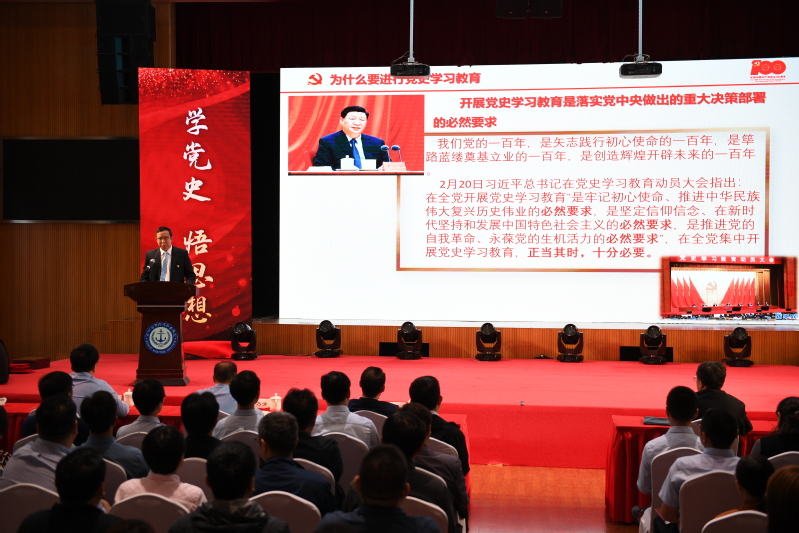 党委书记刘红明讲授《百年党史,辉煌成就》,深入浅出地讲述了党的百年发展历程与伟大实践,共产党人浴血荣光、劈波斩浪、苦难辉煌的奋斗历程,并结合我校办学历史讲述了党领导新中国航运事业发展历程。从宏观历史脉络总结出:只有中国共产党,才能救中国;只有中国共产党,才能发展中国;只有中国共产党,才能引领中华民族实现伟大复兴。