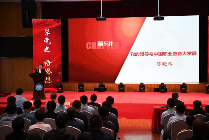 副校长陈晓琴讲授《党的领导与中国职业教育大发展》,紧扣学习教育主题,结合我校创建历史全面阐述了新中国职业教育发展史,阐明了习近平总书记关于职业教育的重要论述和发展职业教育的根本目的、基本方法和实践途径。