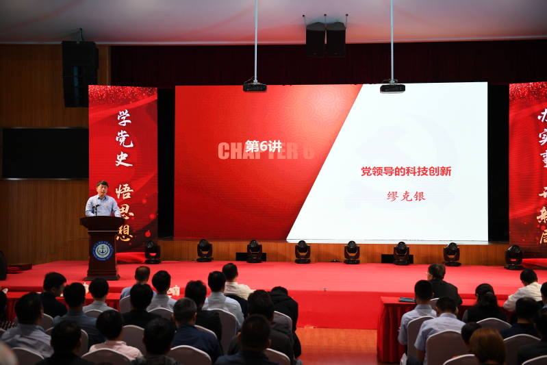 副校长缪克银讲授《党领导的科技创新》,以一个短视频开讲,从三个方面进行了讲解,一是中国科技发展的历程;二是对习近平新时代科技创新思想的理解;三是学校科技创新实现路径探讨。