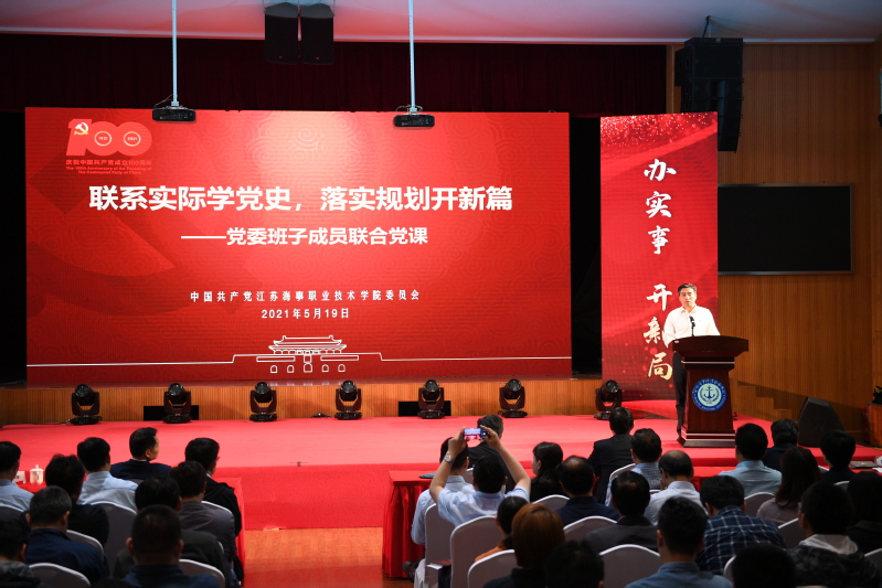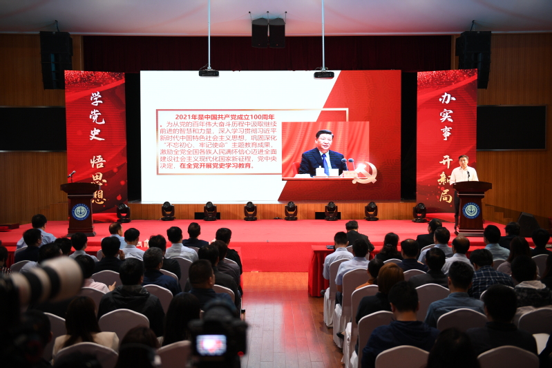 党委副书记王卫兵讲授《我们为什么要进行党史学习教育》,着重阐述了三个必然要求:一是开展党史学习教育是落实党中央做出的重大决策部署的必然要求;二是开展党史学习教育是牢记初心使命、把握历史规律、赓续精神血脉,鼓足前行力量的必然要求;三是开展党史学习教育是推进学校高质量发展的必然要求。广大党员要通过学习党史,聚集党政工团学全体海院人的智慧与力量,共同推动学校发展。