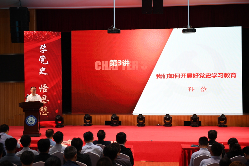 党委组织部、统战部部长孙俭讲授《我们如何开展好党史学习教育》,紧紧围绕“百年党史如何学”,分析“十六字”目标内在逻辑关系,以“学党史、悟思想、办实事、开新局”这条主线,明确三个阶段,把握四个时期,理清全年学习任务。