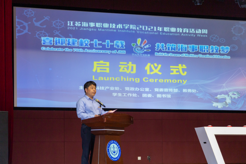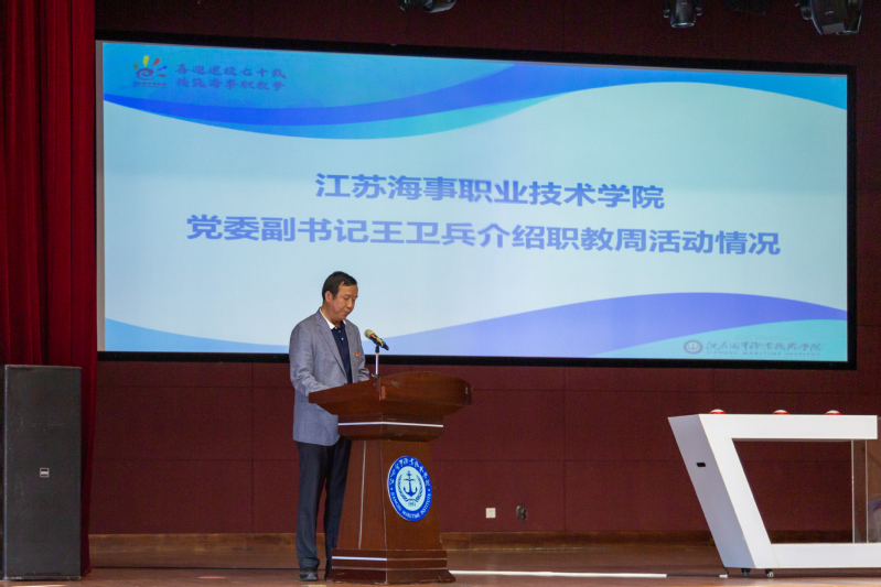 刘红明作致辞发言,他强调,今年是建党100周年,又恰逢学校建校70周年,在“十四五”规划全面开启,学校第三次党代会确立的第一个发展阶段奋斗目标全面冲刺的关键时期,组织开展本届职业教育活动周,既是深入贯彻落实习近平总书记关于职业教育工作重要指示精神和全国职业教育大会精神的具体行动,也是学校站在新的历史起点上,顺应职业教育改革发展大潮,推动学校在国家“双高计划”建设中实现更高质量发展的具体举措。他指出,本次职业教育活动举办一定能够推动社会各界进一步增强对海事职业教育的广泛认同,一定能够推动学校进一步提升办好海事职业教育的信念和信心,也一定能够引导更多学生立技能报国之志、走技能成才之路,为促进海事人才培养、加快海事职教发展营造更加浓厚的氛围,凝聚更加广泛的共识。王卫兵介绍本次活动周组织策划情况。
