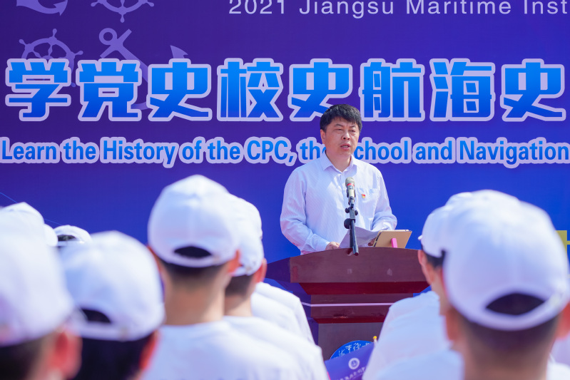 5月22日上午,江苏海事职业技术学院2021年职业教育活动周“学党史校史航海史 明初心使命与担当”现场公开课在大胜关实训基地“育新轮”校船上准时开课。本次公开课由我校杰出校友汪满明船长主讲,学校副校长缪克银,党委委员、宣传部部长刘桂香,党委委员、组织部部长孙俭以及近90位师生共同参加了本次活动。