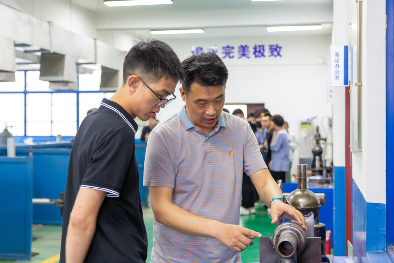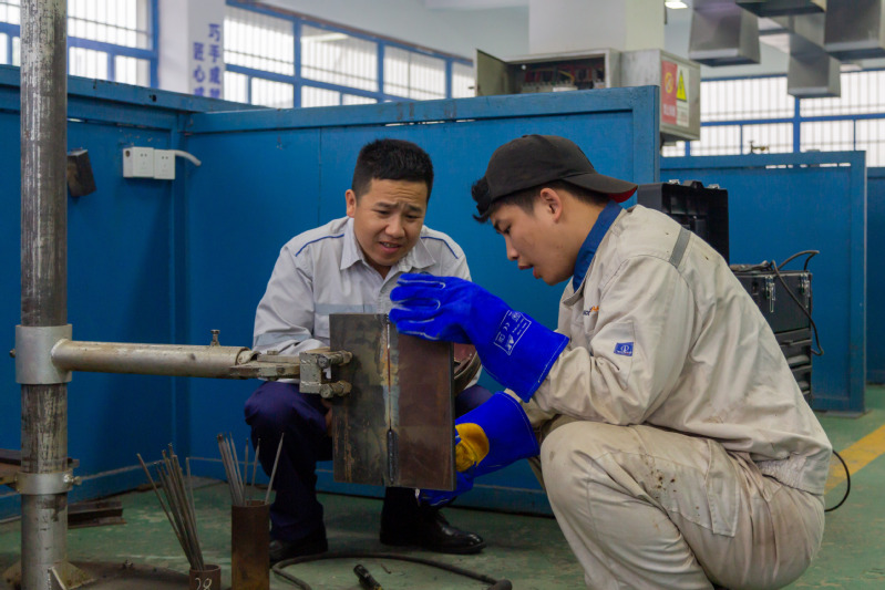 宁显海大师展示着高超焊接技艺,操作技能炉火纯青,并向同学们讲述着学习焊接、永不言弃,最终成为世界技能大赛焊接冠军的艰难之路,21岁的年龄就站在了世界技能之巅,深深触动和激励着在场同学。