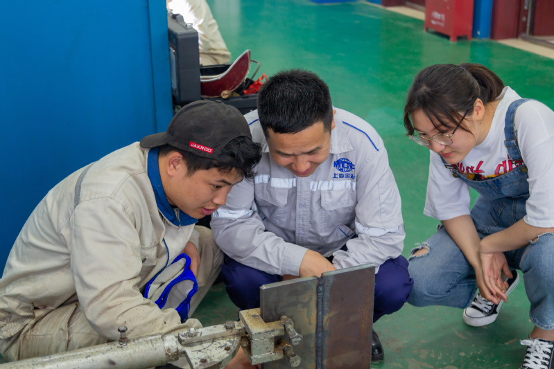 5月26日,江苏海事职业技术学院邀请中国国防科技工业特种焊接服务中心副主任、首席专家白津生,世界技能大赛焊接冠军宁显海和全国技术能手毛琪钦三位大师来校传授技艺,展示绝技巧活。