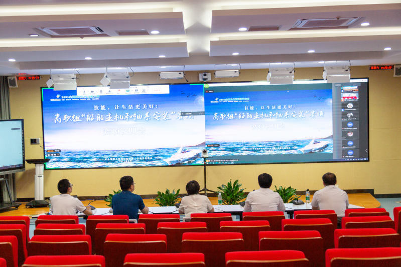 根据2021年全国职业院校技能大赛高职组船舶主机和轴系安装赛项执委会的统一安排,6月5日下午,我校在竞慧楼301召开船舶主机和轴系安装赛项线上说明会。专家组组长武汉理工大学徐立教授、武汉船院等18个省代表队领队和指导老师共计38人参加了会议。副校长陈晓琴出席会议,船舶学院党政班子、教务处、后勤与安保处负责人在现场参加会议,会议由陈晓琴主持。