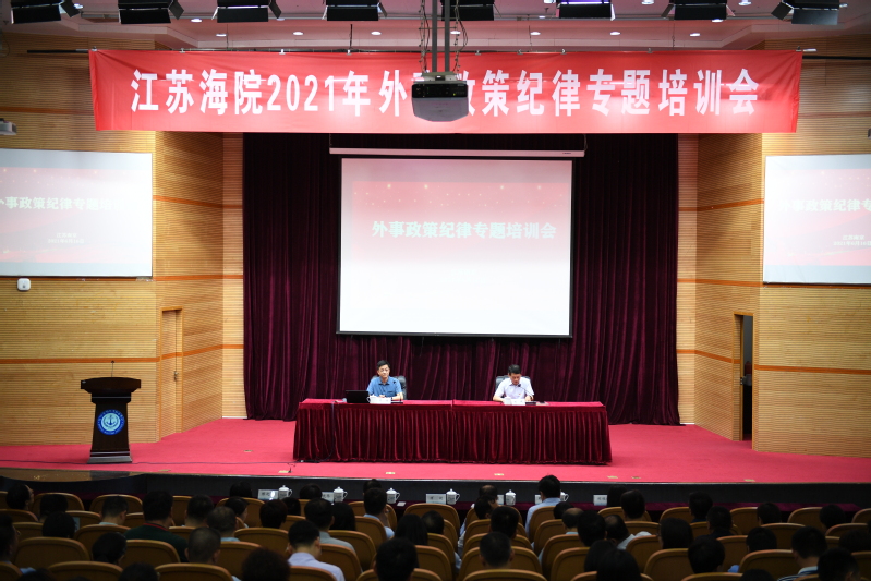 为进一步规范学校涉外事务管理,增强干部和教师外事纪律意识,6月16日,我校在图书馆大报告厅举办外事政策纪律专题培训会。江苏省人民政府外事办公室外事管理处副处长吴丹应邀作专题讲座,学校内设机构负责人及以上管理人员,组织部、人事处及国际教育学院全体教职工参加培训会。校长万健主持培训会。