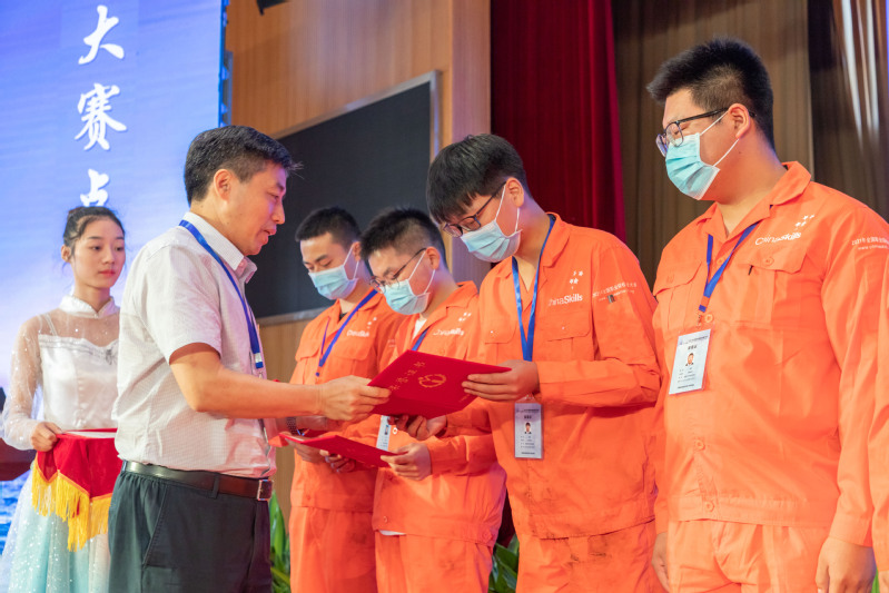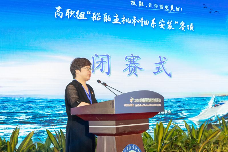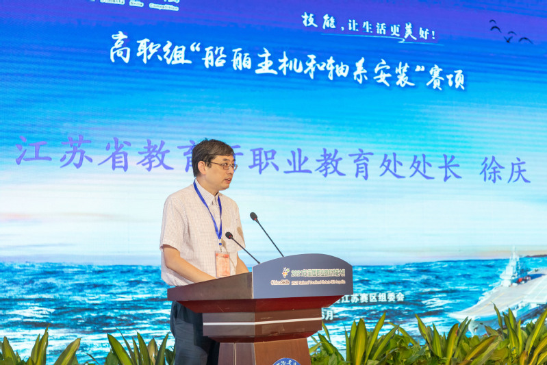 徐庆作重要讲话并宣布2021年全国职业院校技能大赛“船舶主机和轴系安装”赛项胜利闭幕。他首先代表江苏省教育厅向取得优异成绩的参赛同学和指导老师表示热烈的祝贺。他强调本次赛项全方位检验了全国高职院校船舶类专业人才培养的成效,集中展示了各高职院校教育教学改革的创新成果和职教青年的优秀风采,更有力推动了全国船舶类专业的改革与实践。赛场上参赛同学表现出了扎实的技术功底,高超的技能水平和绝招、绝活,和解决实际问题的能力。他同时表示本次大赛组织科学规范、公开透明,按照赛项规程的内容和要求,达到了预期的效果。大赛执委会、承办单位在赛事、防疫、安保、交通、住宿、餐饮等方面为参赛师生提供了优质、精细、舒心的服务。专家组、裁判组、监督仲裁组各位专家团队公正、公平执裁。工作人员、志愿者同学们不辞辛劳,恪尽职守,保障了赛事的高水平和高质量。他强调大赛虽已落下帷幕,但职业教育前途广阔、大有可为。希望各院校进一步增加交流,携手共进,逐步将大赛成果转化为看得见、摸得到的立体化教学资源,真正实现以赛促教、以赛促学、以赛促改的办赛目标,不断创新船舶类专业人才培养模式,为推进职业教育高质量发展,加快建设技能强国做出我们新的更大贡献。