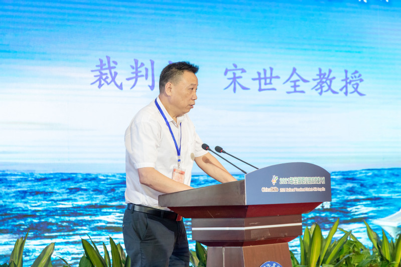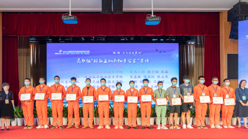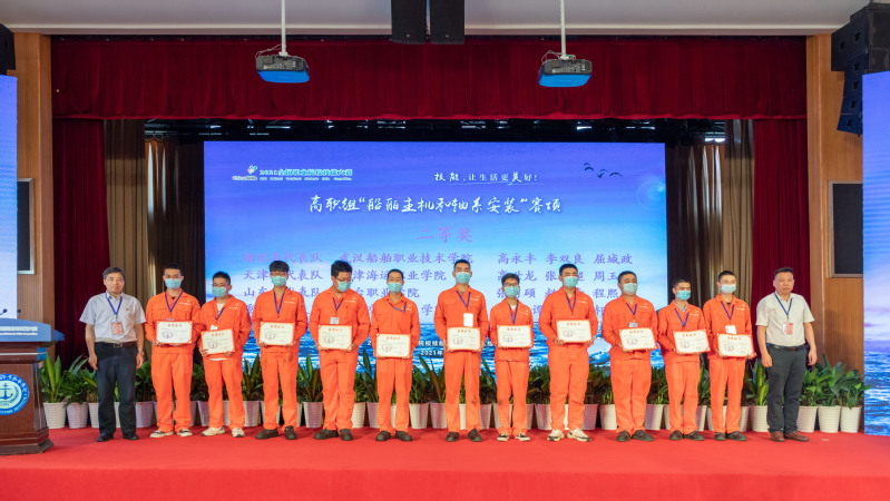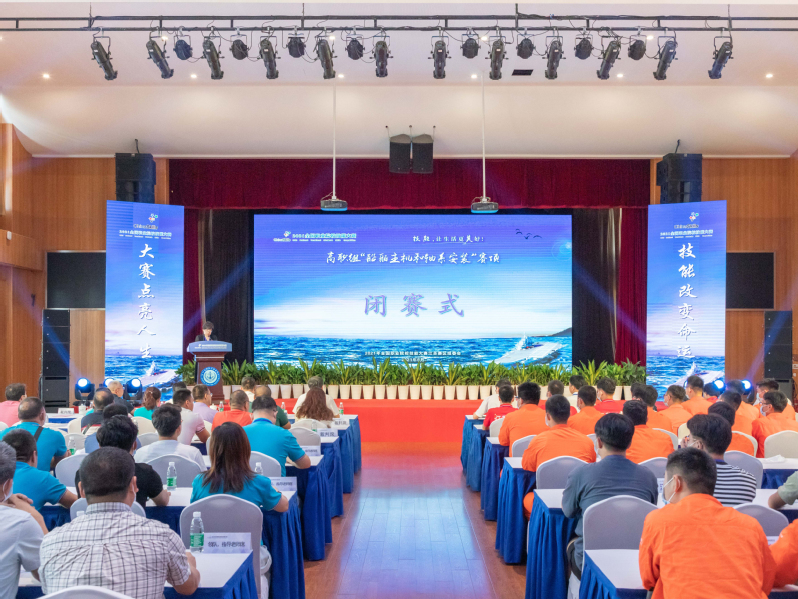 徐立在闭赛式上作竞赛总结和点评,他从赛项设计基本思路、比赛成绩分析、自身感受等三方面与参会人员做交流分享。他强调本赛项将船舶行业企业人才能力需求和船舶主机和轴系安装前沿技术深度融合,以进一步深化校企合作,引导高职船舶类专业开展船舶主机和轴系安装调试等课程建设和教学改革,促进应用型专门人才和高素质劳动者培养模式的改革与发展,增强高职船舶类专业学生就业的竞争力,提高就业水平。同时他也指出参赛选手对竞赛仪器设备性能、特点的熟悉程度还有待提高,情绪把控和专注力等方面还有待加强,实际应用能力和水平还有提升的空间。