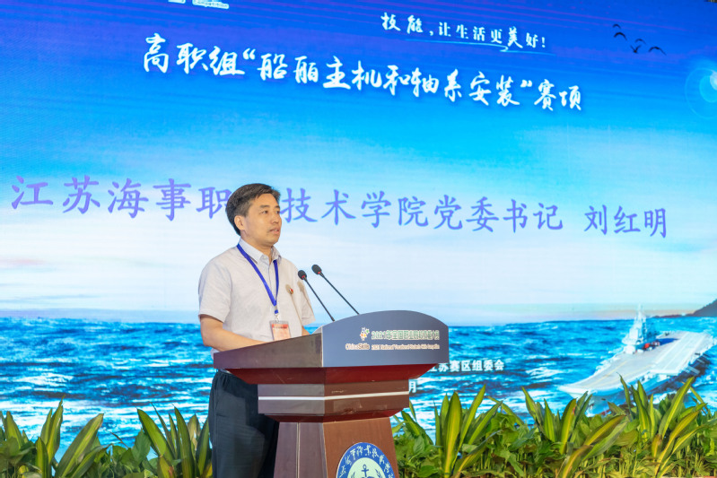 刘红明致闭赛辞。他首先代表江苏海事职业技术学院向全体参赛院校的师生表示诚挚的问候,向取得优异成绩的各代表队和广大同学们致以最热烈的祝贺!向教育部、江苏省教育厅和各兄弟院校,给予我们的信任、指导和支持表示最衷心的感谢!向大赛执委会、专家组、裁判组、监督仲裁组各位专家以及所有为本次大赛付出辛勤努力的工作人员、志愿者和媒体记者朋友们表示最崇高的敬意!他表示赛事期间,广大参赛同学,公平竞争、勇创佳绩,用娴熟的技能、拼搏的英姿、良好的素养,展示了高超的竞赛水平和良好的竞赛风貌,创造了优异的比赛成绩,共同呈现了一场精彩纷呈的青春盛会,结下了深厚的友谊。他强调本次赛会不仅为我们提供了向各位领导专家当面求教,向兄弟院校学习取经的珍贵机会和平台,也必将为学校推动教育教学改革、提高人才培养质量起到“树旗、导航、定标、催化”的作用。江苏海院也将继续以赛促改、以赛促建,为职业教育更加美好的明天作出新的更大贡献!