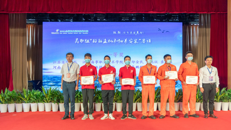 6月21日上午,2021年全国职业院校技能大赛高职组“船舶主机和轴系安装”赛项闭赛式在江苏海事职业技术学院大学生活动中心举行。赛项主委会副主任、江苏省教育厅职业教育处处长徐庆,赛项专家组组长、武汉理工大学教授徐立,赛项裁判长、广州航海学院教授宋世全,赛项监督仲裁长、重庆工程职业技术学院智能制造与交通学院党总支副书记邓国萍,江苏海事职业技术学院党委书记刘红明,副校长陈晓琴等出席闭赛式。参加此次比赛的专家、裁判以及来自全国18个省份的代表队领队、指导老师、选手等参加闭赛式,闭赛式由陈晓琴主持。