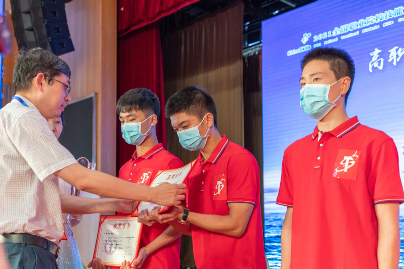 宋世全在闭赛式上宣布竞赛成绩。江苏省代表队、河南省代表队获一等奖;湖北省代表队、天津市代表队、山东省代表队、重庆市代表队获二等奖;浙江省代表队、广东省代表队、四川省代表队、江西省代表队、陕西省代表队获三等奖。与会领导、专家组组长、裁判长、仲裁监督长等一起为获奖团队及指导教师颁奖。