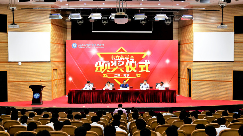 学工处学生资助与服务中心主任陈佳宣读《关于颁发2020年“韦立”奖学金的决定》,领导和嘉宾为获奖学生颁发荣誉证书。