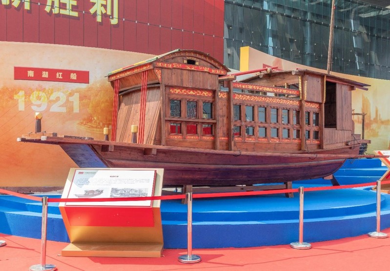 回望百年征程,见证初心永恒。“百年征程 初心永恒——中国共产党在江苏历史展”在南京国际博览中心正式开展。3990个展项,1600米长的展线,通过实物、图片、档案等珍贵资料全方位、全过程、全景式、史诗般再现中国共产党在江苏波澜壮阔的历史画卷。由江苏海事职业技术学院师生创作的“南湖红船”矗立于展馆实物展区。