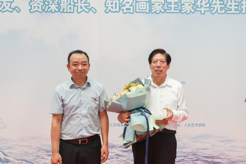刘桂香介绍王家华校友的成长历程。她从王家华在学校就读期间的点滴,毕业后成为船长的成长过程,再到利用业余时间拜名师钻研绘画成为书画名家,和大家一起分享了王家华的奋斗历程。77级校友蔡永光和孙天祥分别发言,回忆了王家华在学校就读时的经历,表达了对王家华捐赠画作的赞赏,抒发了对母校培养的深厚情感。