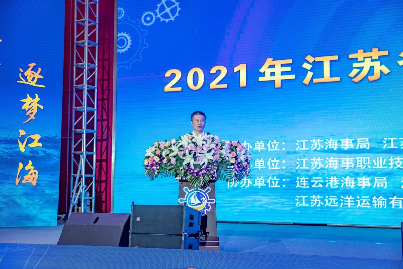 顾潮讲话。他说:2021年江苏省船员职业技能大赛是江苏省“第4届百万技能人才技能竞赛岗位练兵”活动的一项重要内容,也是优化我省全员职业发展环境,促进我省船员队伍高质量发展的创新举措。他强调,江苏高度重视高素质技术人才的培养,百万技能人才技能竞赛岗位练兵活动起步于2018年,是我省覆盖职业最好,参与规模最大、活动时间最长,社会各界最为关注的职业技能竞赛活动。本次大赛赛事规模和参赛人数省内领先,赛事项目内容丰富,行业内组织安排到位,充分体现了我省船员行业团结协作,敢于争先的良好氛围。要以举办大赛为契机,进一步营造钻研技术、爱岗敬业的良好风尚,培养更多精益求精、追求卓越的高素质青年人才,为江苏航运大省、航运强省建设贡献更多的基本力量。