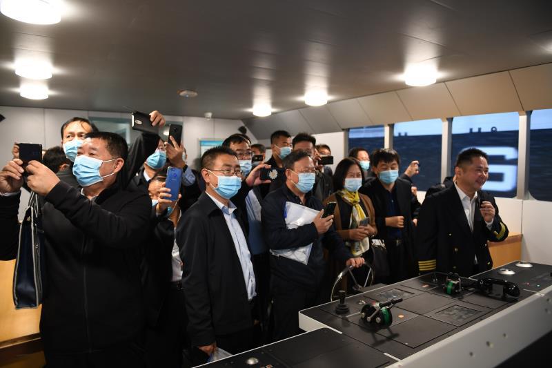 随后,各位来宾在教务处副处长李淼引导下认真考察了我校智慧教室、现代港口生产技术、智能化机舱、航海模拟器等实训场地,并对我校人才培养质量、产教融合成效给予了高度评价。