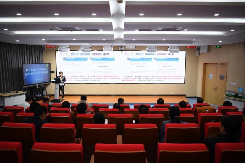 为了深化交流和学习江苏高职院校改革发展经验,应北京师范大学邀请,副校长陈晓琴在竞慧楼301会议室为山西职业院校卓越校长培育培训班一行作《江苏海院“双高计划”建设的探索与实践》主题报告,她详细解读了“双高计划”建设内涵和遴选路径,重点阐述了我校的探索与实践,并现场分享了相关心得体会。整个报告主题鲜明,深入浅出,分析透彻,理论与实践相结合的精彩汇报得到了培训班成员的一致肯定,不时赢得阵阵掌声。