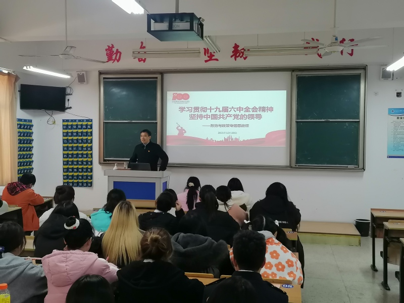 校领导带头上思政课,是我校深入贯彻落实全国高校思想政治工作会议和中央文件精神,营造良好氛围,推进立德树人的重要举措。12月20日,党委书记刘红明走上讲台,以《学习贯彻党的十九届六中全会精神 坚持中国共产党的领导》为主题,分别给大数据与会计211301、2班以及国际贸易211301、2班上了一堂生动精彩的思政课。