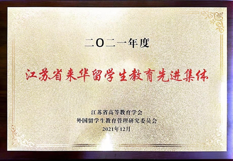 近日,2021年度江苏省高等教育学会外国留学生教育管理研究委员会年会在南京召开。我校荣获2021年度“江苏省来华留学生教育先进集体”。今年共有35所高校获此荣誉,其中高职院校6所。