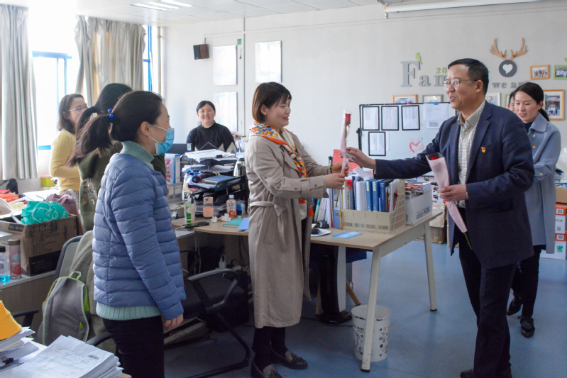 3月8日下午,学校党委书记刘红明、党委副书记王卫兵在校工会工作人员的陪同下先后到航海学院、机电学院、经管学院、信息学院、人文学院、机关有关部门走访慰问有课的女教师和坚守岗位的女职工,为女职工送上节日的问候,并通过她们向全校女教职工致以节日的祝贺和诚挚的慰问。