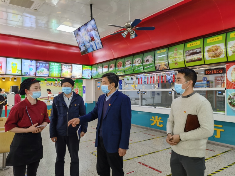 3月11日下午,学校党委书记刘红明在校党政办、安保处、后勤处相关人员陪同下深入一线指导疫情防控工作。