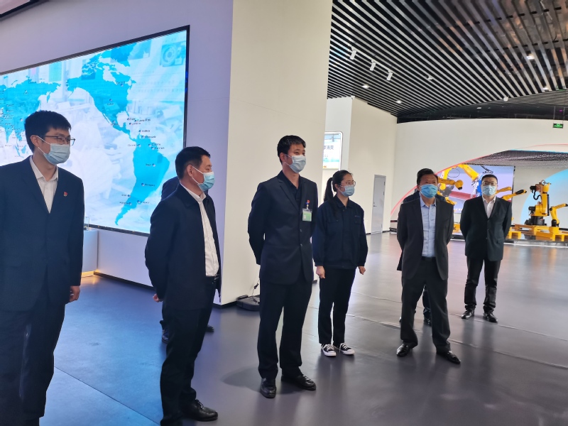 学校领导在吴扬军的陪同下,走进两器分厂、总装分厂和公司科技展厅进行参观,通过实地考察和现场讲解等方式,深入了解公司智能化、自动化程度和产能规模。