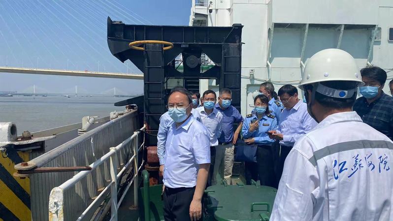 为认真贯彻落实习近平总书记关于长江经济带“共抓大保护、不搞大开发”重要指示精神,切实加强长江沿线生态环境保护和修复,5月6日下午,由江苏省生态环境厅副厅长尹荣尧带队的长江生态保护专项检查组来到我校板桥校区实船实训基地,就基地所辖的长江岸线生态保护工作情况进行了现场检查和指导。雨花台区副区长蓝波及雨花台区生态环境局负责人等共同到场指导,我校副校长缪克银热情迎接了检查组专家和政府领导。