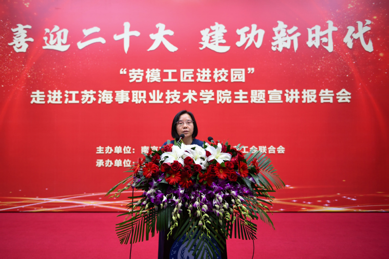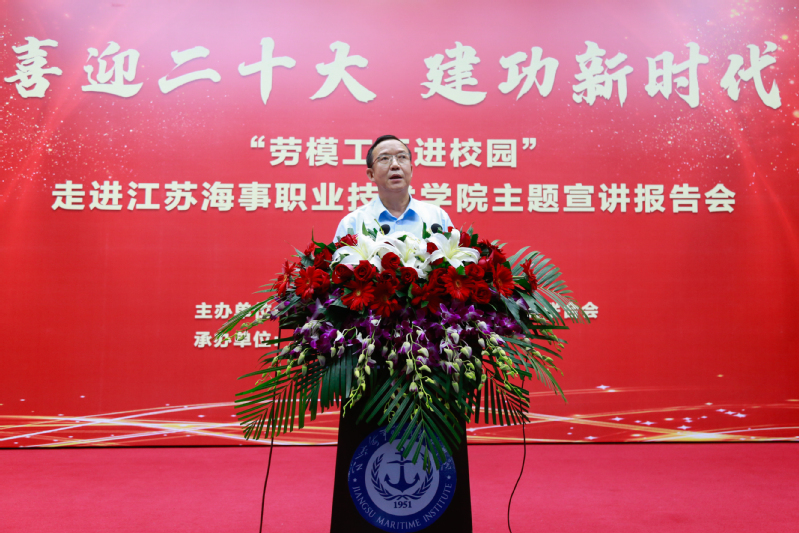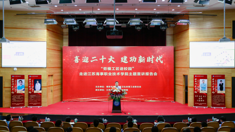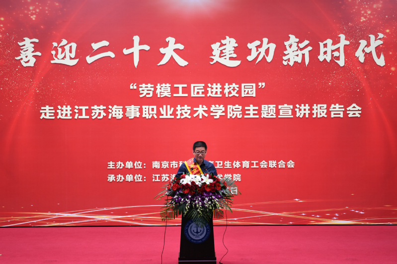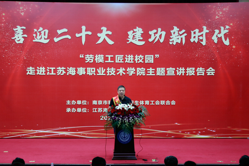 5月25日,由南京市科技教育卫生体育工会联合会,江苏海事职业技术学院联合主办的“喜迎二十大 建功新时代”劳模工匠进校园主题宣讲报告会在我校图书馆大报告厅成功举办。南京市总工会宣教部部长何玄梅,南京市科技教育卫生体育工会联合会孙燕主席、方世才处长、张夏英处长、王红星副处长,学校党委书记刘红明,党委副书记王卫兵出席了本次活动。我校师生线下160人,线上7500余人聆听了本次报告会。学校党委副书记王卫兵主持报告会并致辞。