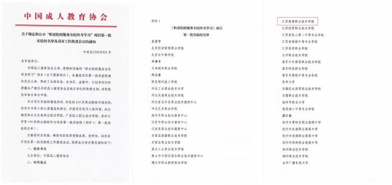 6月10日,中国成人教育协会发布《关于确定和公示“职业院校服务全民终身学习”项目第一批实验校名单及召开工作推进会议的通知》(中成协〔2022〕21号),我校名列其中,入选全国“职业院校服务全民终身学习”项目第一批实验校。