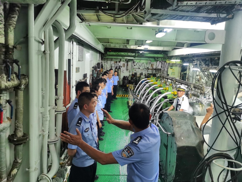 在前期校警双方业务交流和党建合作持续顺畅开展的基础上,本次长航公安南京分局组织开展的消防业务培训依托我校实船实训基地“育新”轮教学资源,对受训民警开展了船舶机舱检查要点和消防法律文书填写规范的培训,并对机舱各个重点部位进行现场实操,培训内容由浅入深、从理论到实际,让受训民警对船舶机舱检查的重点有了更清晰的认识。