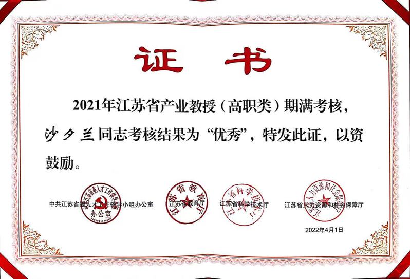 7月27日,由江苏省委人才工作领导小组办公室主办的江苏省科技镇长团、产业教授、科技副总队伍建设暨产才融合发展推进会在南京召开,我校省级特聘产业教授沙夕兰作为受邀高职院校代表出席会议并作为江苏省高职类产业教授期满考核优秀代表上台领奖。