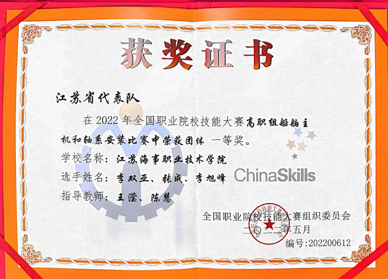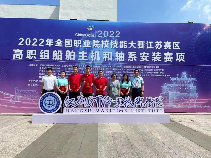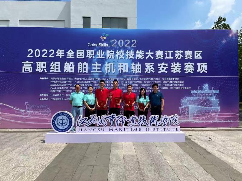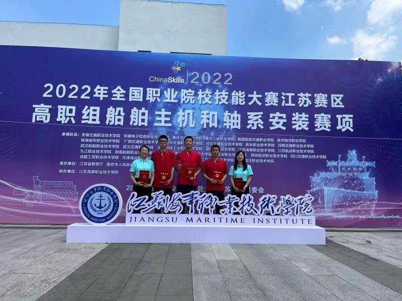 2022年7月29日至8月1日,全国职业院校技能大赛高职组船舶主机和轴系安装赛项在我校举行。本次比赛共有来自19个省份的28支代表队参与同台竞技,我校船舶与海洋工程学院李双亚、张成、李旭峰三位同学组成的代表队经过六个模块的激烈角逐,喜获一等奖第一名,王滢、陈慧两位老师获优秀指导教师奖,实现了学校在该赛项的蝉联。