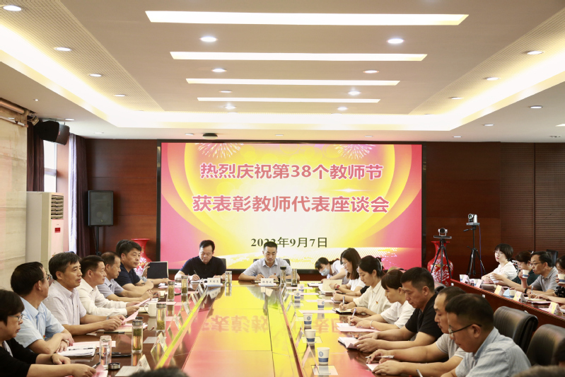 又是一年佳节至,金秋硕果挂满枝。在第38个教师节来临之际,我校表彰了一批 “最美教师”“四有好老师”“干事创业先进教育工作者”“优秀辅导员”和“优秀班主任”。9月7日下午,在办公楼201会议室,党委书记刘红明主持召开庆祝第38个教师节暨受表彰教师代表座谈会。校长万健,党委副书记王卫兵,副校长田乃清、陈晓琴、缪克银,纪委书记陈之蕾,党委委员、宣传部部长刘桂香,党委委员、组织部部长孙俭,受表彰教师代表,教务处、科技处、学工处、国资处、后勤处、工会、人事处等部门负责人参加座谈会。
