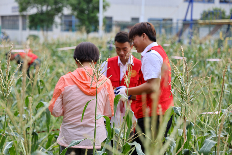 随后,后勤与安保处党支部陆文晓副处长组织党员们深入玉米地开展采摘活动。一个个忙碌的身影在玉米地来回穿梭,大家一边采摘,一边交流,密切配合,共同感受劳动的快乐和丰收的喜悦。