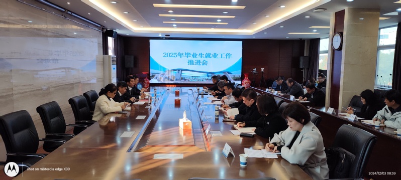 会上,招就处处长王利成传达教育部关于强调进一步加强就业安全工作的最新文件精神;教务处副处长郭娅娜就毕业生资格审核及毕业实习安排进行发言;各二级学院院长汇报了2024届毕业生就业情况并围绕如何有效推进2025届毕业生就业工作进行了交流。