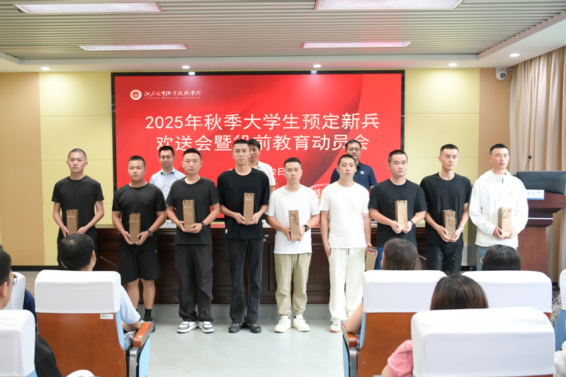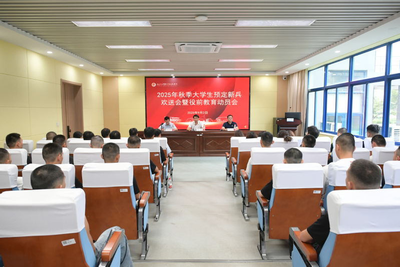 9月2日上午,我校2025年秋季预定新兵欢送会暨役前教育动员会在至德楼G106会议室举行。校党委委员、副校长郑军,党委学工部部长王利成,各二级学院党总支副书记、征兵专干、辅导员及55名应征入伍学生参加欢送会。会议由党委武装部部长张含玮主持。