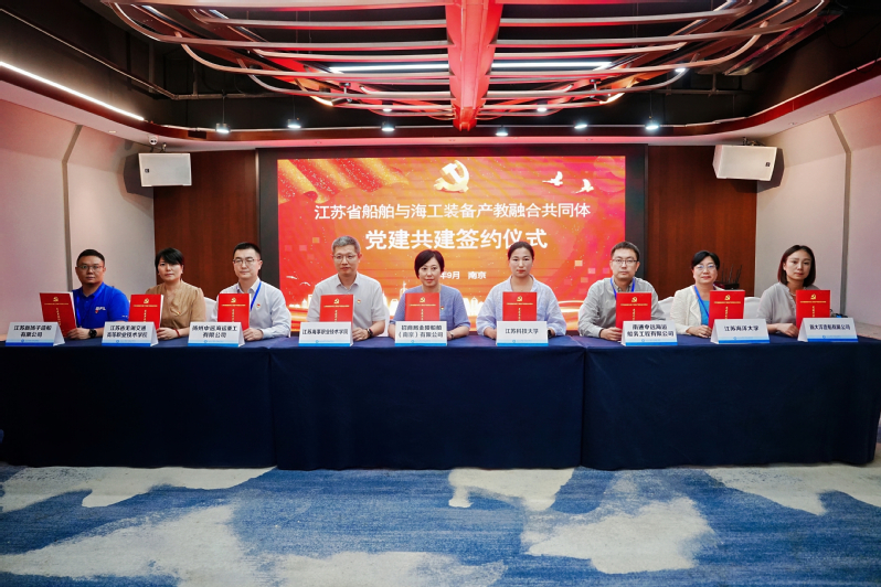 9月29日下午,江苏省船舶与海工装备产教融合共同体党建共建签约仪式在我校成功举行。作为产教融合共同体副理事长单位,我校牵头组织共同体成员单位召开基层党组织共建联席会议,首批共12家基层党组织积极参加,包括省内4家高校基层党委、党总支和8家船海头部企业的组织人事、技术中心党支部。校党委副书记缪克银出席会议并致辞,船舶与智能制造学院党总支代表学校基层党组织参加签约仪式。