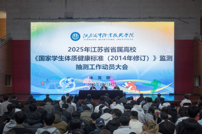 10月24日下午,我校在体育馆召开2025年江苏省省属高校《国家学生体质健康标准(2014年修订)》监测和抽测工作动员大会。学校副校长、体育工作委员会主任马洪涛出席并讲话。体育部负责人以及航海、机电、船舶、经管、信息、邮轮等六个二级学院分管学生工作副书记、辅导员、体育部教师和参加本次监测的440多名学生参会。会议由体育部直属党支部负责人王统娟主持。