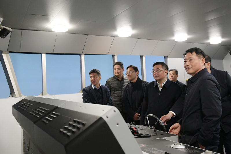 随后,调研组实地考察了我校国内领先的轮机智能化机舱,相关负责人汇报了该基地在高端船员培养、国家级技能大赛备赛、海事科技创新及社会培训等方面发挥的核心作用。在航海数字仿真中心,区领导体验了国际一流的航海模拟器,听取了我校在虚拟仿真教学、海事事故调查技术研发、服务国家重大工程等方面取得的突破性进展。