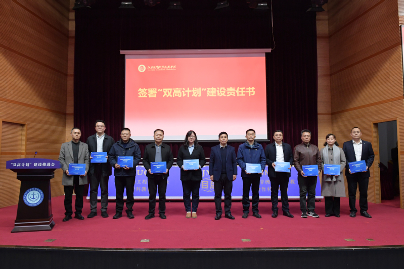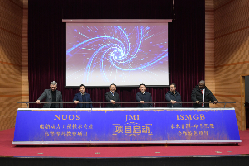 会上,学校与合作方共同启动了中外合作办学及中非职业教育合作特色项目,并举行了《“双高计划”建设责任书》签署仪式。教师代表航海技术学院党总支书记黄锦鹏回顾了首期建设历程,船舶与智能制造学院院长赵先锐作为新一期建设单位代表作表态发言。