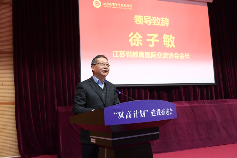 12月19日,我校在图书馆大报告厅召开第二期“双高计划”建设推进会,会议主题为“锚定新蓝图、聚力新双高,奋力谱写学校高质量发展新篇章”。江苏省教育国际交流协会会长徐子敏,校党委书记万健、校长温华兵等党委班子成员与招商局金陵船舶(南京)有限公司总经理江家忠及海外院校代表共同出席会议。学校副科级以上干部、专业负责人、课程中心主任、教师代表及学生代表参加会议。会议由副校长陈晓琴主持。