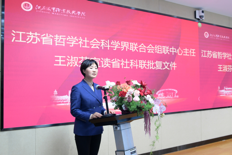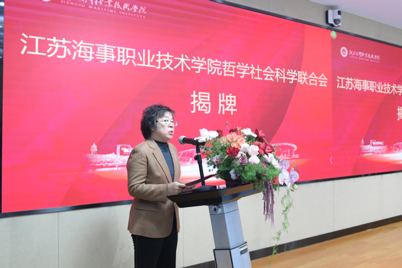随后,王淑芬宣读了《江苏省哲学社会科学联合会关于同意接纳江苏海事职业技术学院社科联为团体会员的批复》。在全场与会人员的共同见证下,刘西忠与万健共同为“江苏海事职业技术学院哲学社会科学联合会”揭牌,标志着学校哲学社会科学事业迈入新阶段。