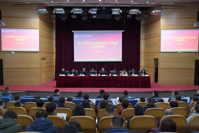 党委书记万健作动员讲话,他指出,开展树立和践行正确政绩观学习教育,是党中央立足新时代新征程党和国家事业发展全局作出的重大部署,是今年党的建设的重大任务。全校各级党组织和党员干部要深刻领会开展树立和践行正确政绩观学习教育的重要意义,将正确政绩观融入管党治党、办学治校、立德树人全过程、各环节。
