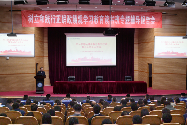 党委委员、副校长马洪涛以《深入推进项目化教育教学改革,服务人的全面发展——以正确政绩观推动学校高质量发展》为题作辅导报告。他从深刻领会正确政绩观的核心内涵、准确把握正确政绩观的内在要义、深入推进项目化教育教学改革等三个方面,结合学校教育教学工作实际,分享了以正确政绩观引领教育教学改革、提升育人质量的实践思考,为全体党员干部立足岗位践行正确政绩观、推动工作提质增效提供了具体遵循。