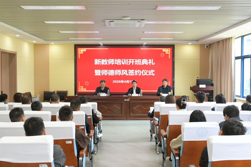 4月15日上午,2026年新教师培训开班典礼暨师德师风签约仪式在经济管理学院一楼报告厅举行。校长温华兵、党委副书记缪克银出席培训班开班典礼,教务处、科技处、学工处、人事处等职能部门负责人以及近两年新入职教师参加了开班典礼。开班典礼由党委教师工作部部长、人事处处长张军主持。