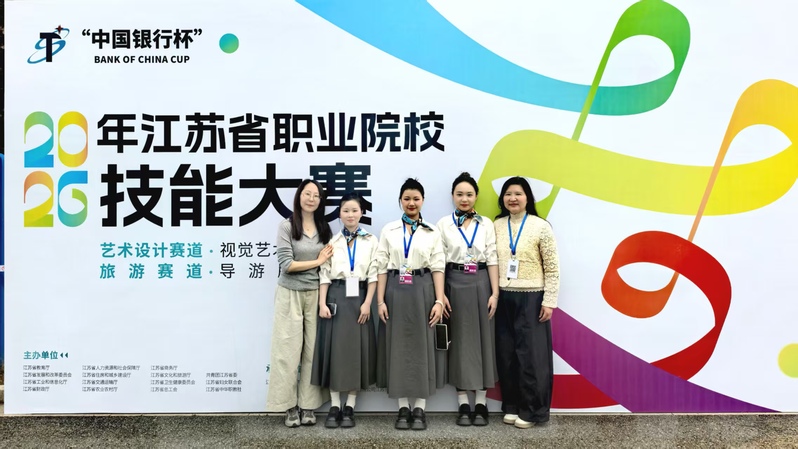 4月14日至16日,由江苏省教育厅主办的2026年江苏省职业院校技能大赛“视觉艺术设计”赛项在江苏旅游职业学院圆满落幕。经过激烈角逐,我校邮轮与艺术设计学院闻梓煊、李珊珊、翟诺言三位同学组成的参赛团队,在指导老师席彬、陈思思的悉心指导下,凭借扎实的专业功底、出色的创意设计和稳定的现场发挥,从全省69支参赛队伍中脱颖而出荣获一等奖!