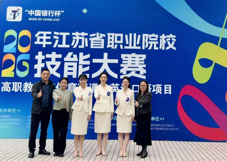 4月19日至21日,2026年江苏省职业院校技能大赛英语口语赛项在盐城幼儿师范高等专科学校举行。来自全省高职院校的29支英语专业团队同台竞技,竞争激烈。经过多轮比拼,我校吕爽、纪宇凡、潘非晚三位同学组成的参赛团队(指导教师:李明、李培)过关斩将,表现亮眼,最终荣获一等奖第一名。