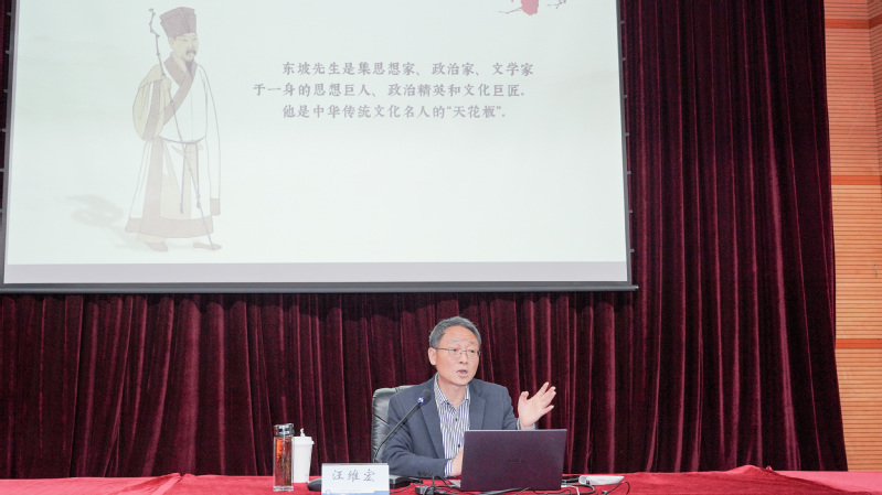 开幕式后,江苏省书香全民阅读基金会理事长、作家汪维宏博士带来名家作品分享《每个人心中,都有一个苏东坡》,以苏东坡的人生智慧与阅读精神引发师生共鸣。